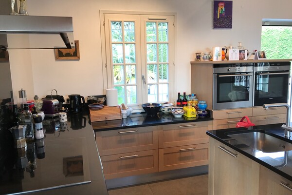 Belle villa entièrement privatisée à proximité du village. Sans vis-à-vis, la résidence sur deux niveaux et cloturée par des haies bien taillées, donne sur le jardin et la piscine. Possibilité de garer les voitures au sous-sol.